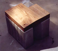 Hocker für die Skulptur "Publica" in Kultur- und Begegnungszentrum Neumünster Stein, Eichenholz, Grösse 30X30X30 cm 2005 Stadt Luxemburg